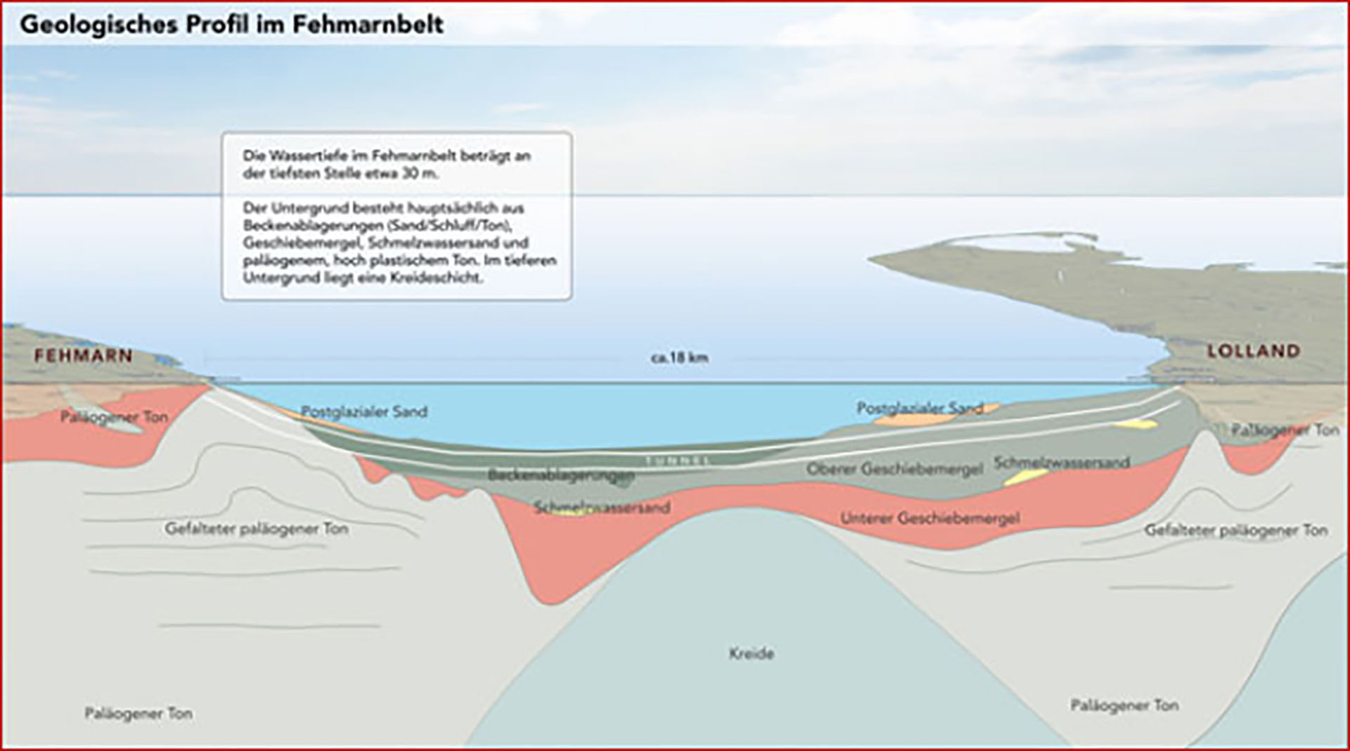 Mit der Festen Fehmarnbeltquerung soll die Ostsee mit einer 18km langen kombinierten Eisenbahn- und Straßenverbindung zwischen Lolland (DK) und Fehmarn (D) gequert werden. Die Infrastrukturdämme auf Fehmarn werden über eine offene Baugrube in die Trogstrecke bzw. den Absenktunnel überführt.