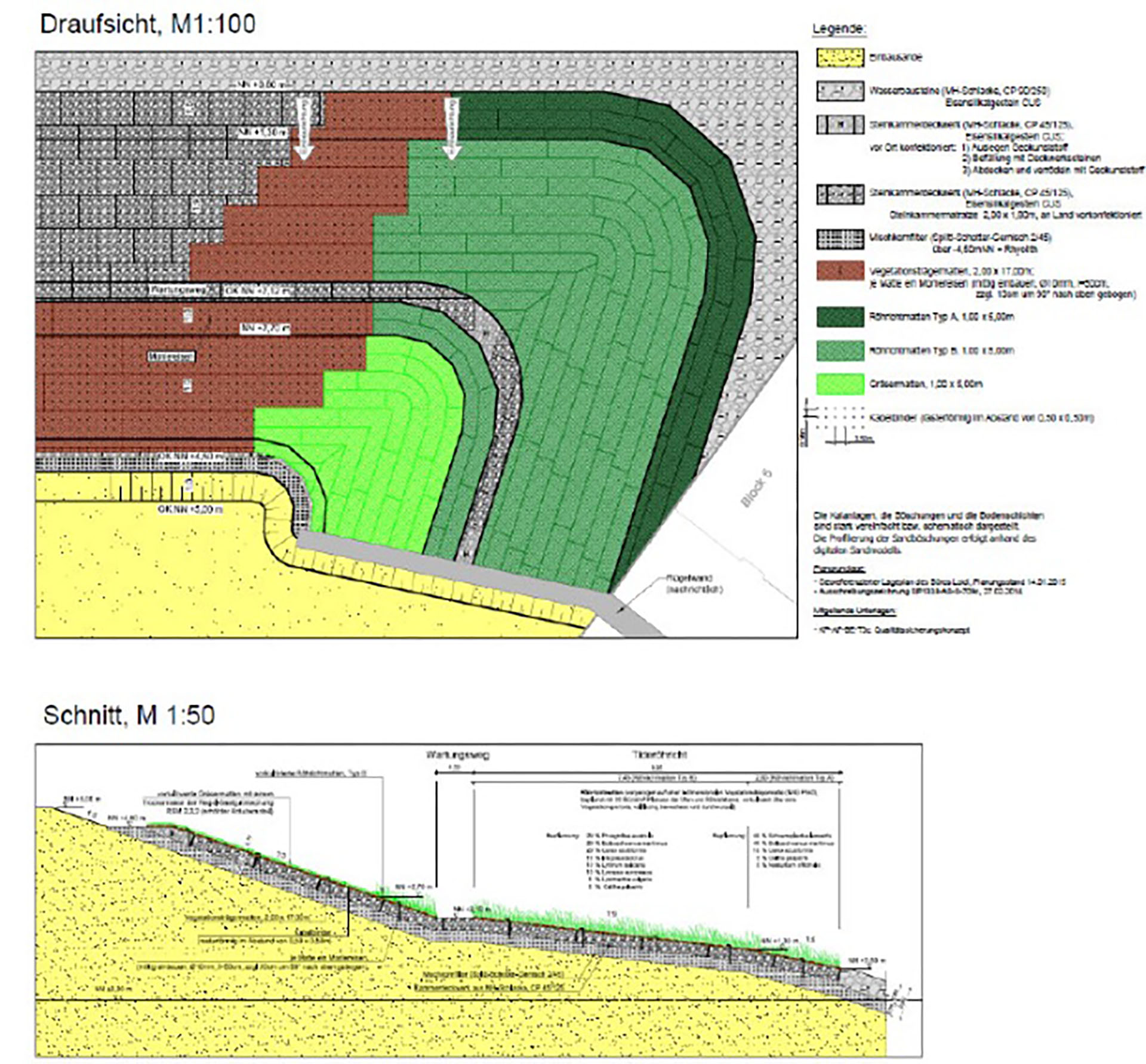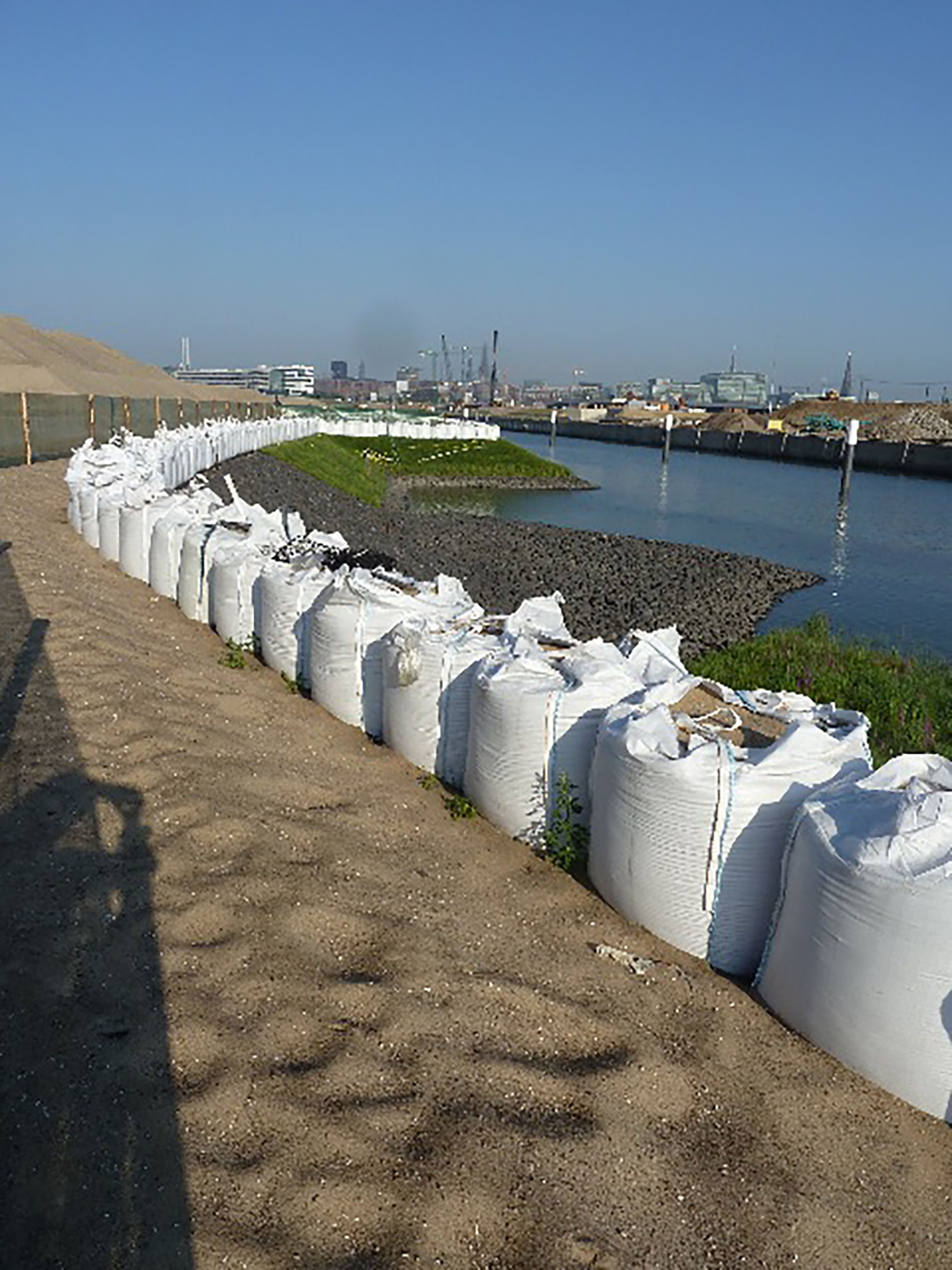Im Baakenhafenquartier der Hamburger Hafencity ist eine ca. 1,5 ha große Spiel- und Freizeitinsel geplant, die der besonderen Prägung des Quartiers dienen wird. Der Bau des Erdkörpers erfolgte nach Teilbodenaustausch des gering tragfähigen Schlicks zunächst per gezielter Verrieselung unter Wasser und anschließendem Spülverfahren. Die Außenhaut der künstlichen Halbinsel wird im Tideeinflussbereich mit Deckwerk und oberhalb mit vorkultivierter Begrünung gesichert.